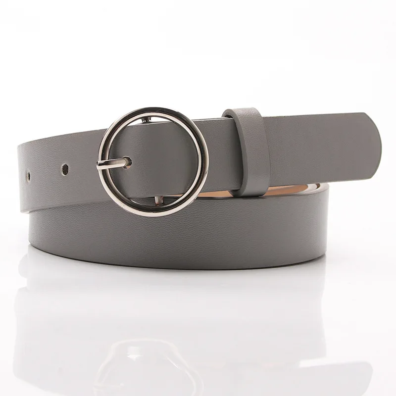 Best New Gold Round Metal Circle Belt Female Red Gray Black PU Leather Waist Belts for Women Jeans Pants