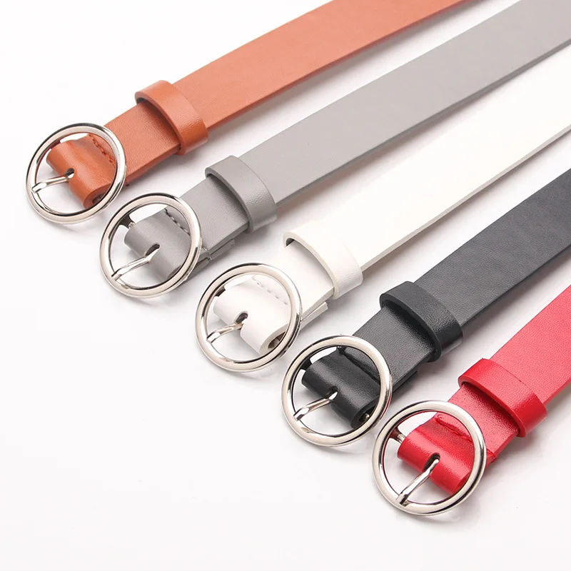 low cost New Gold Round Metal Circle Belt Female Red Gray Black PU Leather Waist Belts for Women Jeans Pants