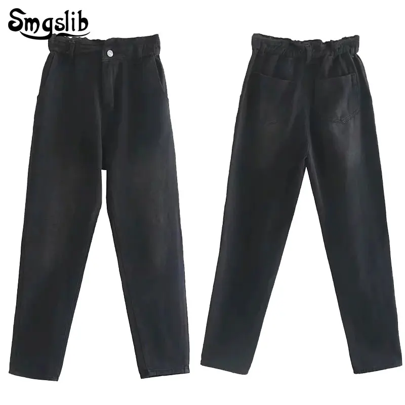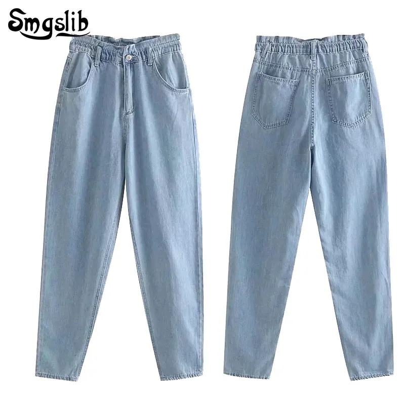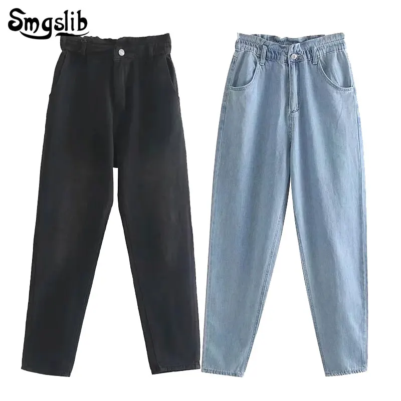 remarkable 2019 high street collect waist pockets mom jeans woman high waist jeans washed vintage loose harem