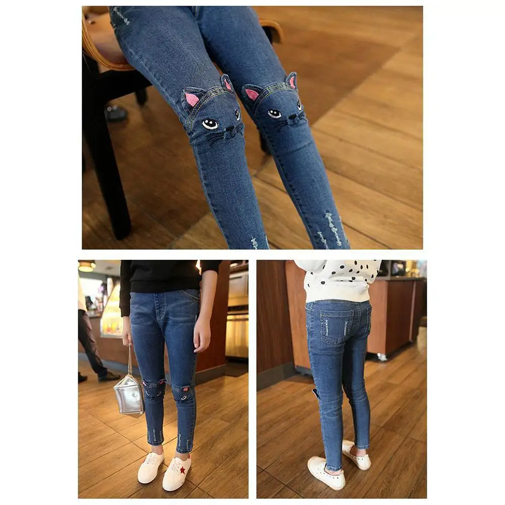 price cut Kidlove Girl fashion autumn Jeans long pants Embroidered Kitten Cute Pattern Cat Bunny Jeans Fashio
