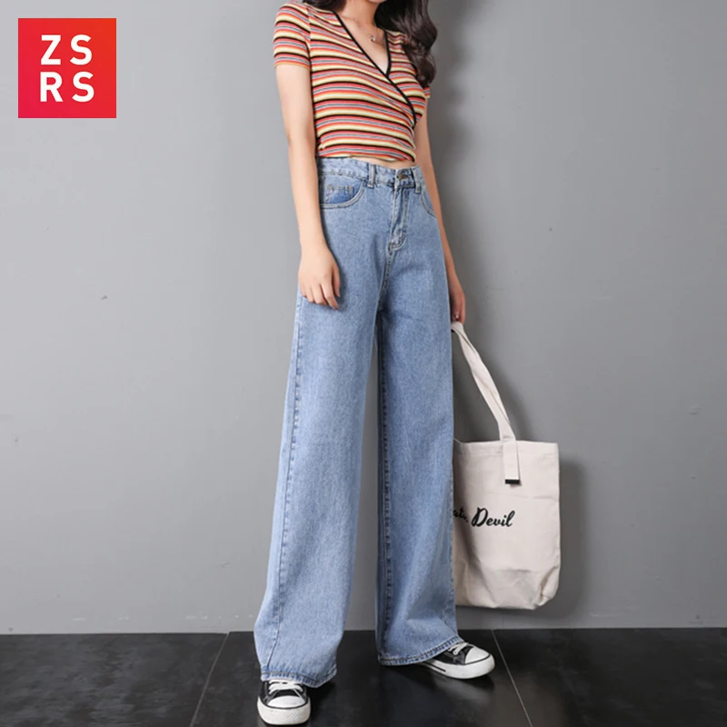 price cut ZSRS Women Jeans Pants Leisure Loose High Waist Vintage wide leg jeans Women Jean Korean Style All-