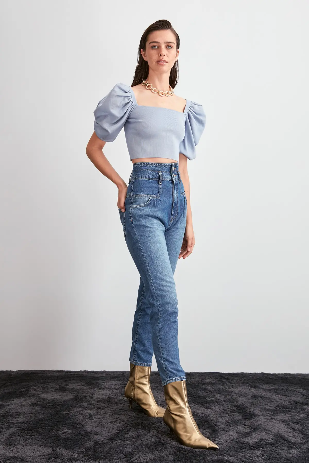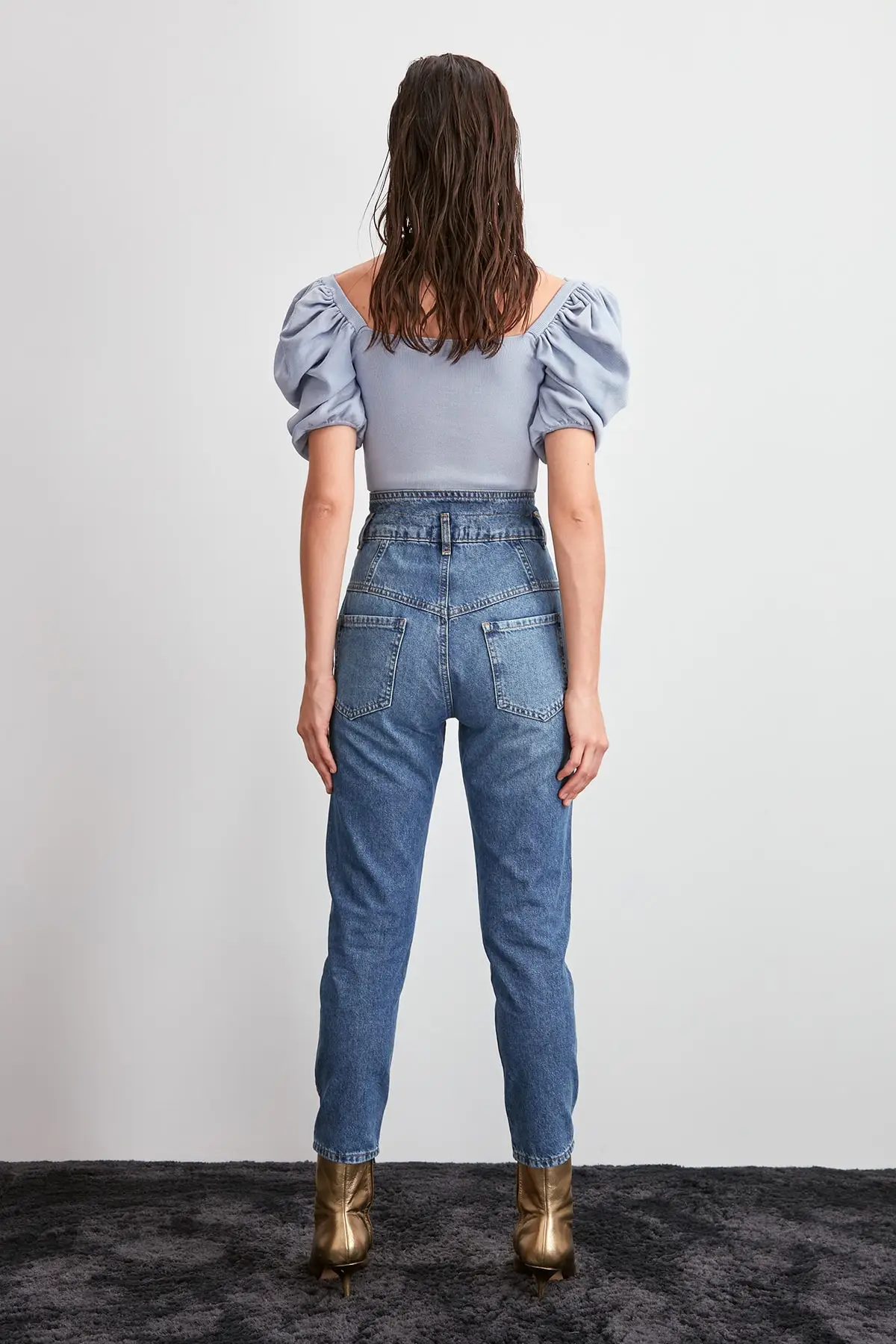 awesome Trendyol Waist Detail Super High Waist Mom Jeans TWOAW20JE0344