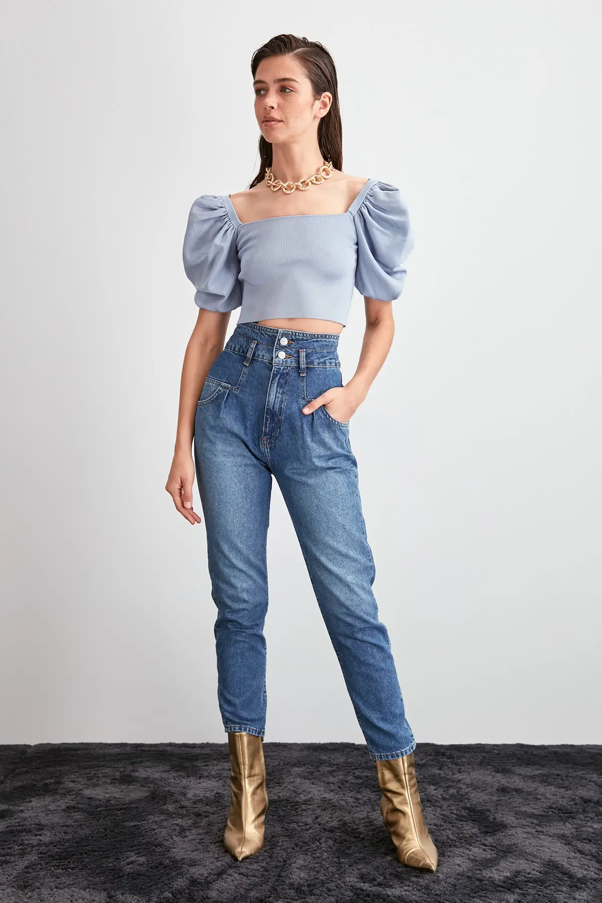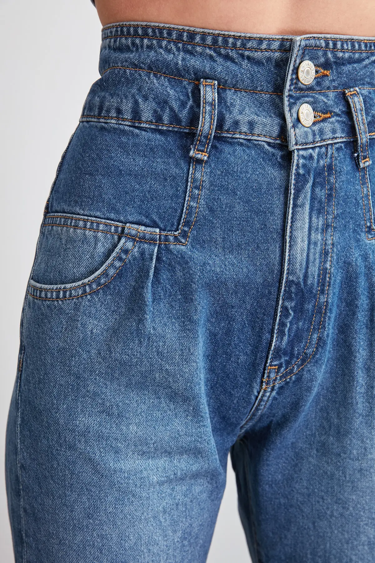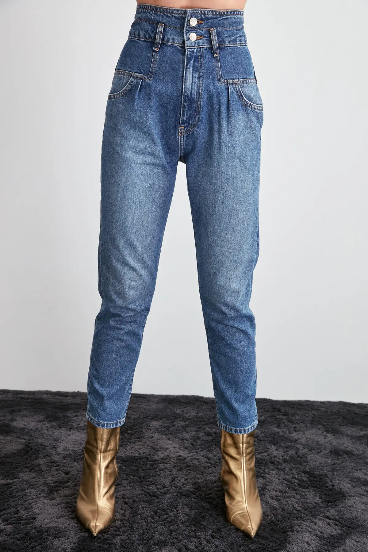 wonderful Trendyol Waist Detail Super High Waist Mom Jeans TWOAW20JE0344