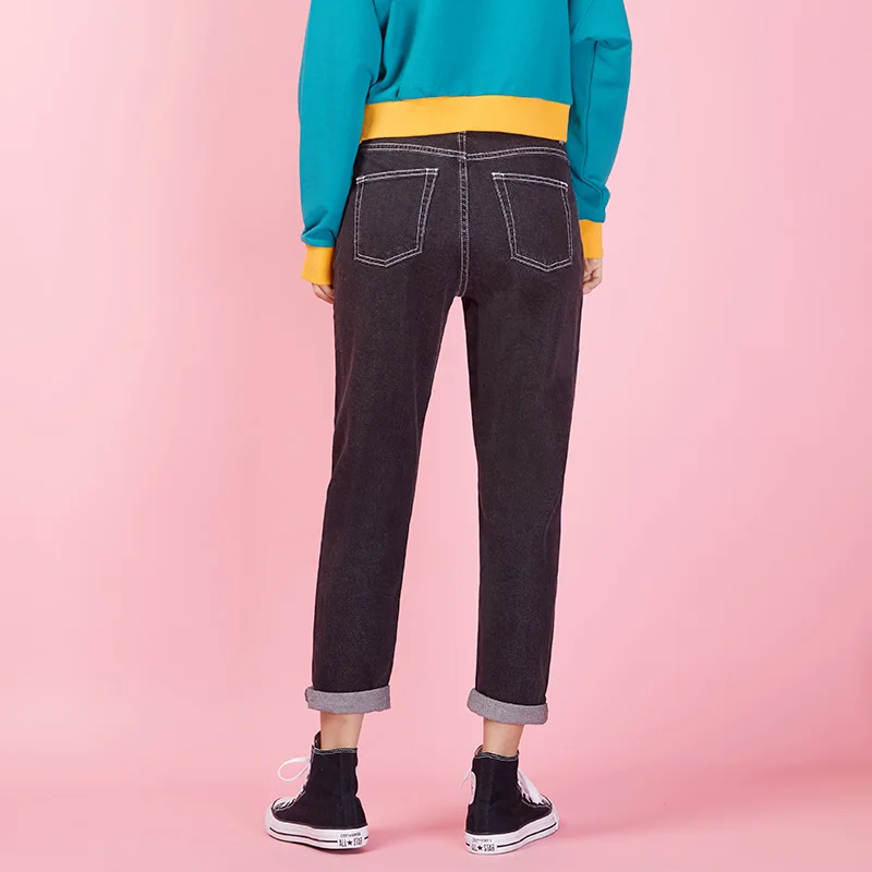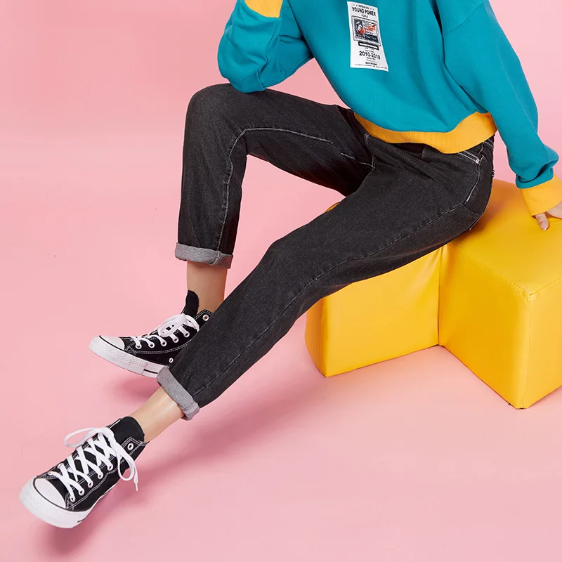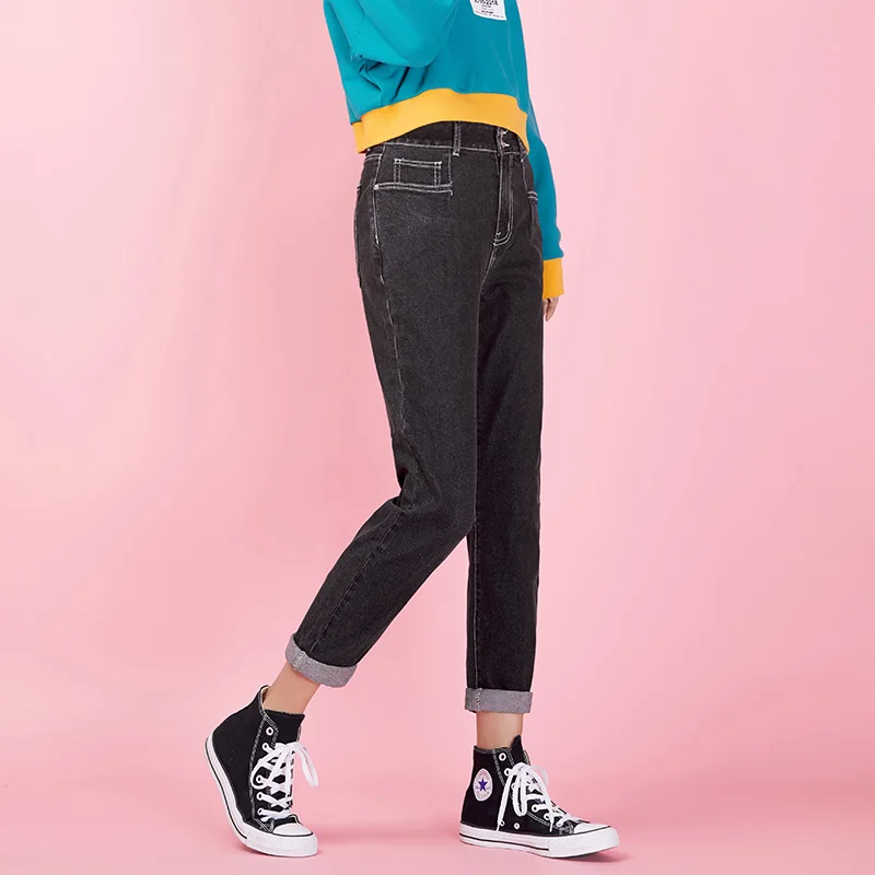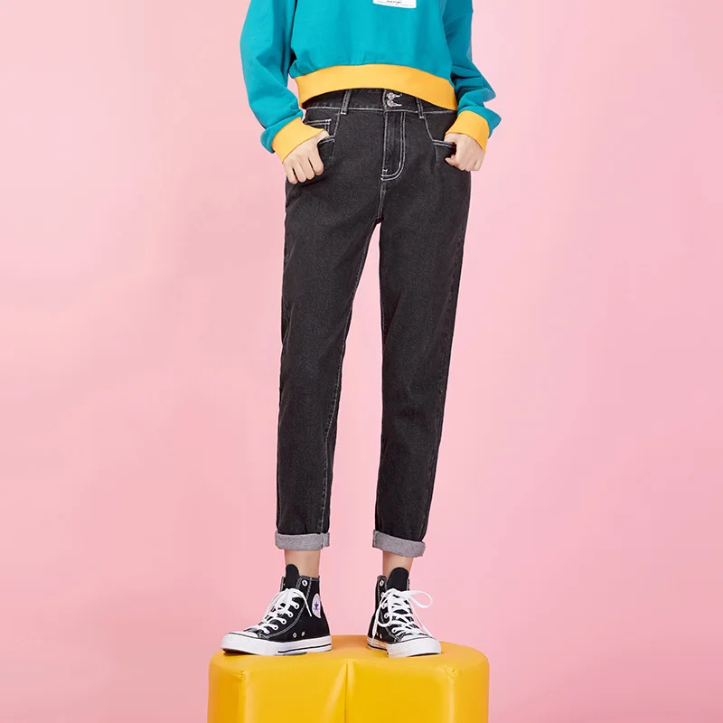 awesome LEIJIJEANS new Pants waist low elastic waist loose Harlan long jeans double-breasted black casual l