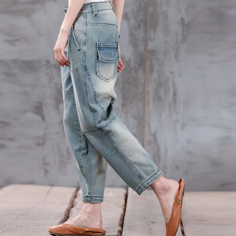 low cost Loose Vintage Woman Jeans Autumn Bleached Casual Boyfriend Denim Oversize Cotton Loose Harem Ankle