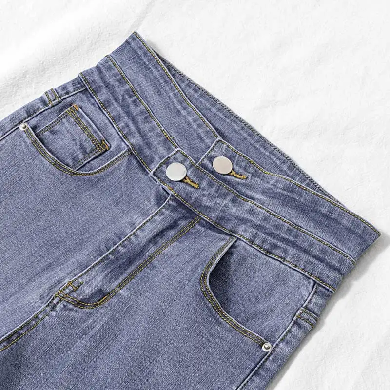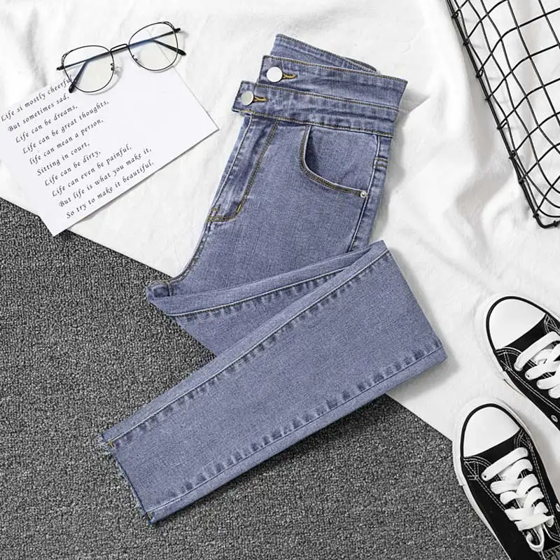 New Korean Women Jeans Stretch Black jeans Female Slim Skinny High Waist Ring Nine Points Feet Pants Do