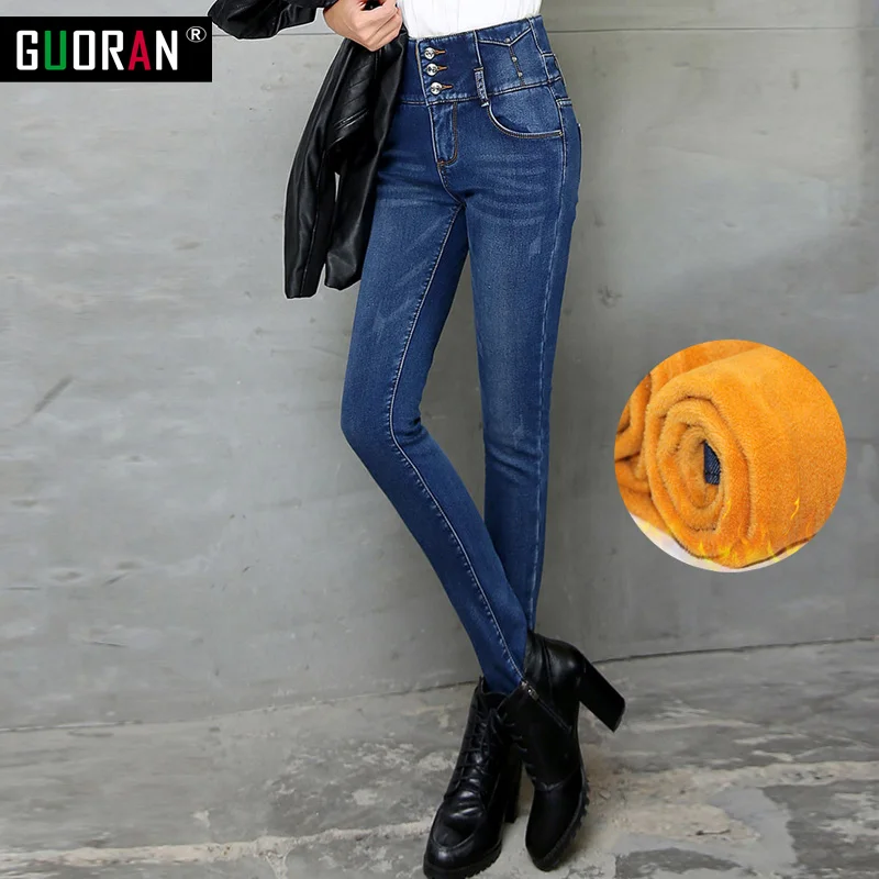 discount 2016 Fashion winter warm thicken plus velvet Ladies Cotton Denim pencil Pants Stretch Womens Skinny