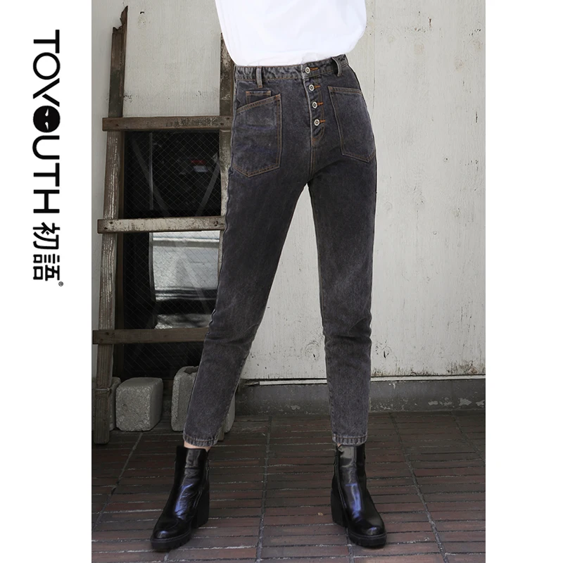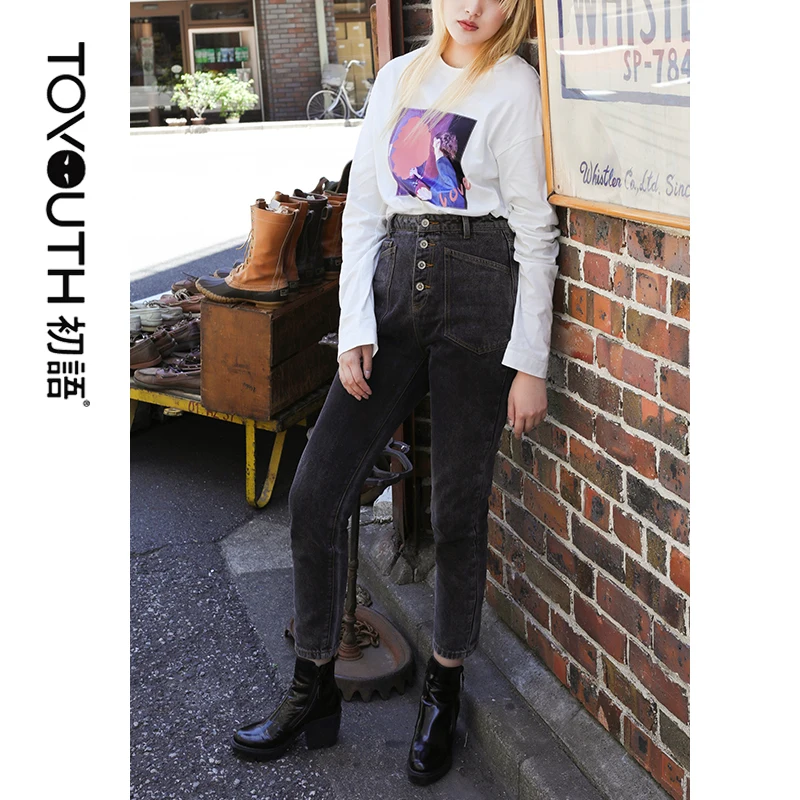Very best Toyouth Vintage High Waist Skinny Jeans For Women Single Breasted Black Trousers All-Match Solid De